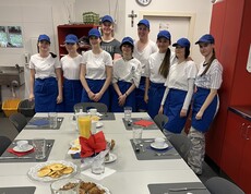 In our last cooking lesson, we learned a lot of interesting new things about English cuisine. One of the highlights was making the magical scones with jam and clotted cream. Above all, we had a lot of fun preparing different dishes, such as scrambled eggs, crispy bacon, and creamy porridge. And, of course, we loved eating them! The 1FSB team made a super delicious English breakfast that we all enjoyed – fit for royalty!