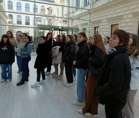 Uni-Luft schnuppern und Probesitzen im Hörsaal: Im Rahmen der „Einführung in das wissenschaftliche Arbeiten“ erkundet die 4A die Universitätsbibliothek.