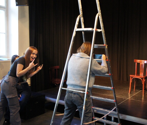 In diesem Workshop mit Theaterpädagogin Angelina Schallerl (TaO!/Next Liberty/Theaterfabrik) probierten wir Grundtechniken des Schauspiels aus. Dazu gehörten Körper-, Raum- und Gruppenwahrnehmung sowie Übungen zu Sprache und Ausdruck, die nicht nur für neue Erkenntnisse, sondern auch für viel Spaß sorgten. Die Gruppe setzte sich danach mit dem Thema „Zukunft“ auseinander und erarbeitete Szenen, die auf der Bühne präsentiert wurden.