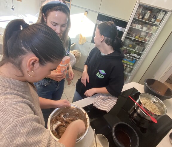 Klassenübergreifend haben wir am 8. November 2023 gemeinsam mit der Ernährungsberaterin Beate Prader vegane Gerichte gekocht. Sowohl herzhafte als auch süße Gerichte haben wir zubereitet und verkostet. Wir fanden den Tag sehr interessant und das vegane Essen hat uns sehr gut geschmeckt.