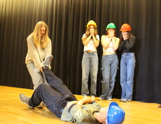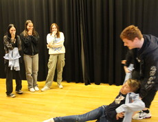 Vor Beginn der Aufführung erhielten wir eine kurze Einführung in das Theaterstück. Hierbei ging es um die Frage nach dem Inhalt des Stückes, wie zum Beispiel Streit oder Mobbing in der Schule. Um dem Thema etwas näher zu kommen, spielten zwei von uns eine bestimmte Szene nach, die anderen mutmaßten, was dargestellt wurde.