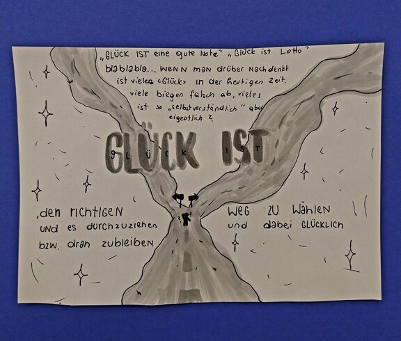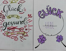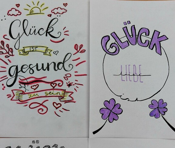 Schüler*innen der HLW und FSB haben sich im Fach Kreativer Ausdruck Gedanken dazu gemacht, was Glück für sie bedeutet. Mit der Kunst des Buchstabenmalens, bekannt als „Handlettering“, haben sie sehr persönliche Kärtchen gestaltet und damit eine Glückswand zusammengestellt. Hier werden die positiven Einstellungen unserer Schüler*innen sichtbar und verdeutlicht, dass Glück weit mehr ist als materieller Besitz oder finanzieller Reichtum.