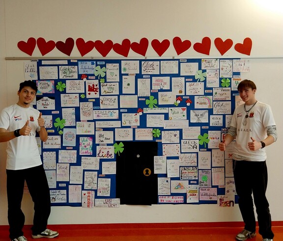 Nach dem Zitat von Albert Schweitzer „Das Glück ist das einzige, das sich verdoppelt, wenn man es teilt“ soll die Glückswand die positive Stimmung in unserem Schulalltag stärken.