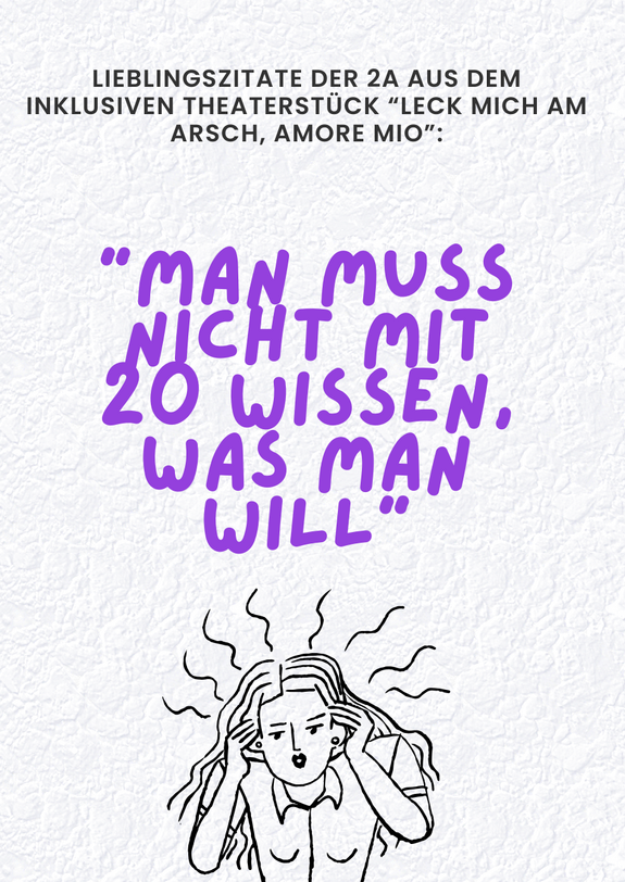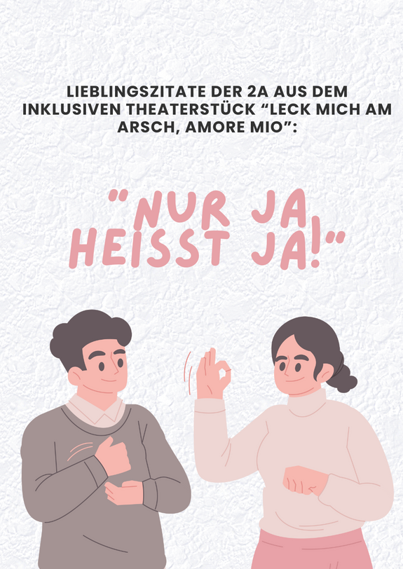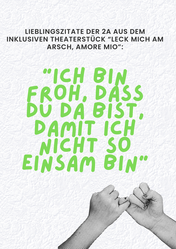 „Leck mich am Arsch, amore mio!“ ist eine inklusive Relaxed Performance (also eine Theaterform, die die Regeln lockert, damit sich alle beim Theaterbesuch wohlfühlen können) über Liebe und Sexualität. In Kooperation mit der Theaterakademie LebensGroß und im Rahmen des inklusiven Tanz-, Kultur- und Theaterfestivals InTaKT. Ausgehend vom Setting eines Kaffeehauses werden verschiedenste Facetten der Liebe und Sexualität thematisiert. Unterschiedliche Sehnsüchte, Körper, Identitäten und Erfahrungen werden sichtbar gemacht und Barrieren abgebaut.