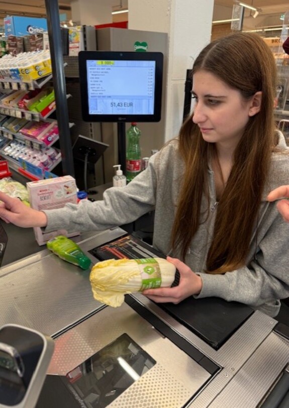 Die Schüler*innen waren sehr interessiert und haben an der Kasse gescannt und eine Bezahlung entgegengenommen.