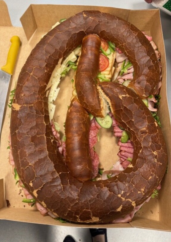 Im Anschluss wurden wir im Pausenraum mit Süßigkeiten und einer belegten Brezel sehr gut verköstigt und erhielten weitere Informationen über die Firma Spar als Arbeitgeber.