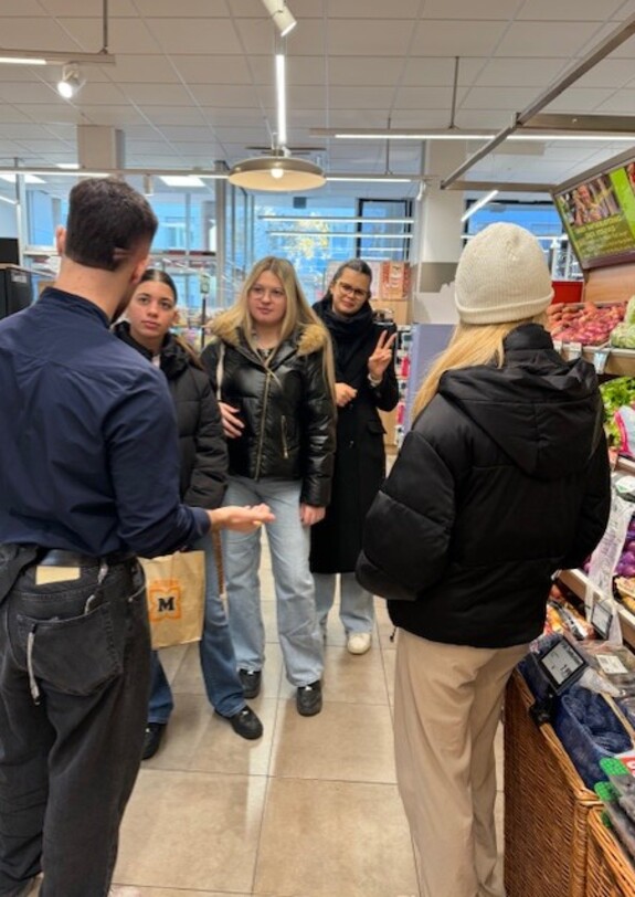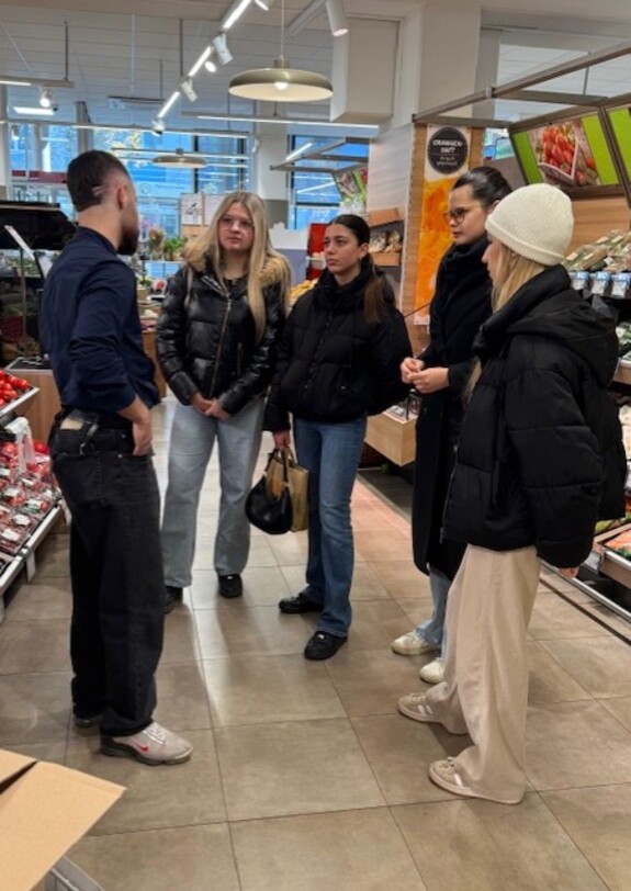Beim Besuch bei Spar in der Lange Gasse konnten die Schüler*innen die verschiedenen Stationen in einem Lebensmittelmarkt kennenlernt – die Feinkost- und Lebensmittelabteilung sowie das Kassieren.