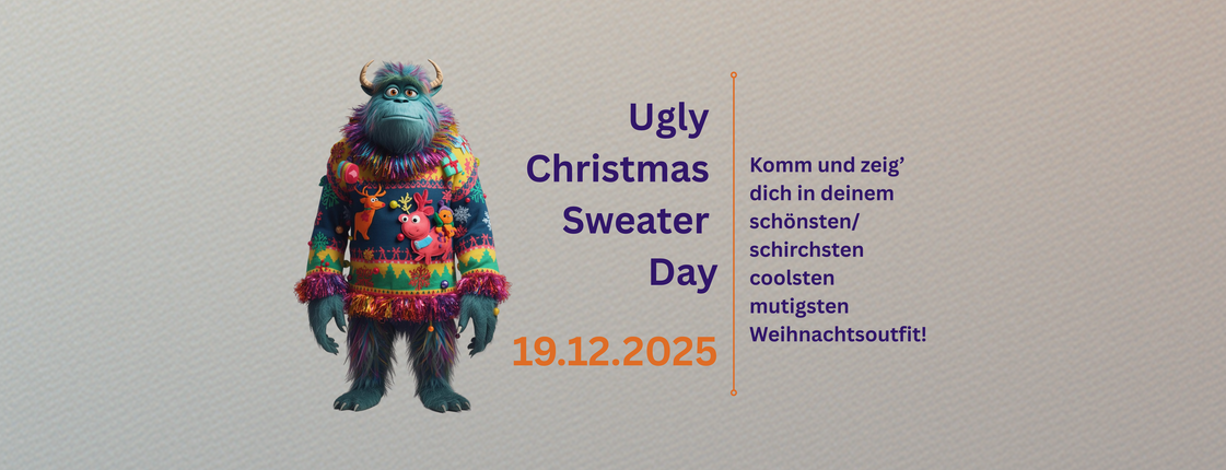 Pro or No – wir wollen unsere schönsten, hässlichsten, coolsten und mutigsten Weihnachtsoutfits an einem Tag am Bildungscampus Graz sammeln und die Magie von Weihnachten mit vereinten Kräften bündeln.