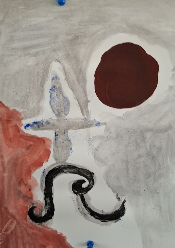 Auch ein Bild sollten die Schüler*innen zu zweit erschaffen. Ihre Schöpfung sollte vom Original inspiriert werden. Daraus entstanden Kreationen, die von der Farbgebung, der Maltechnik, der Wirkung oder der Bildkomposition inspiriert wurden.